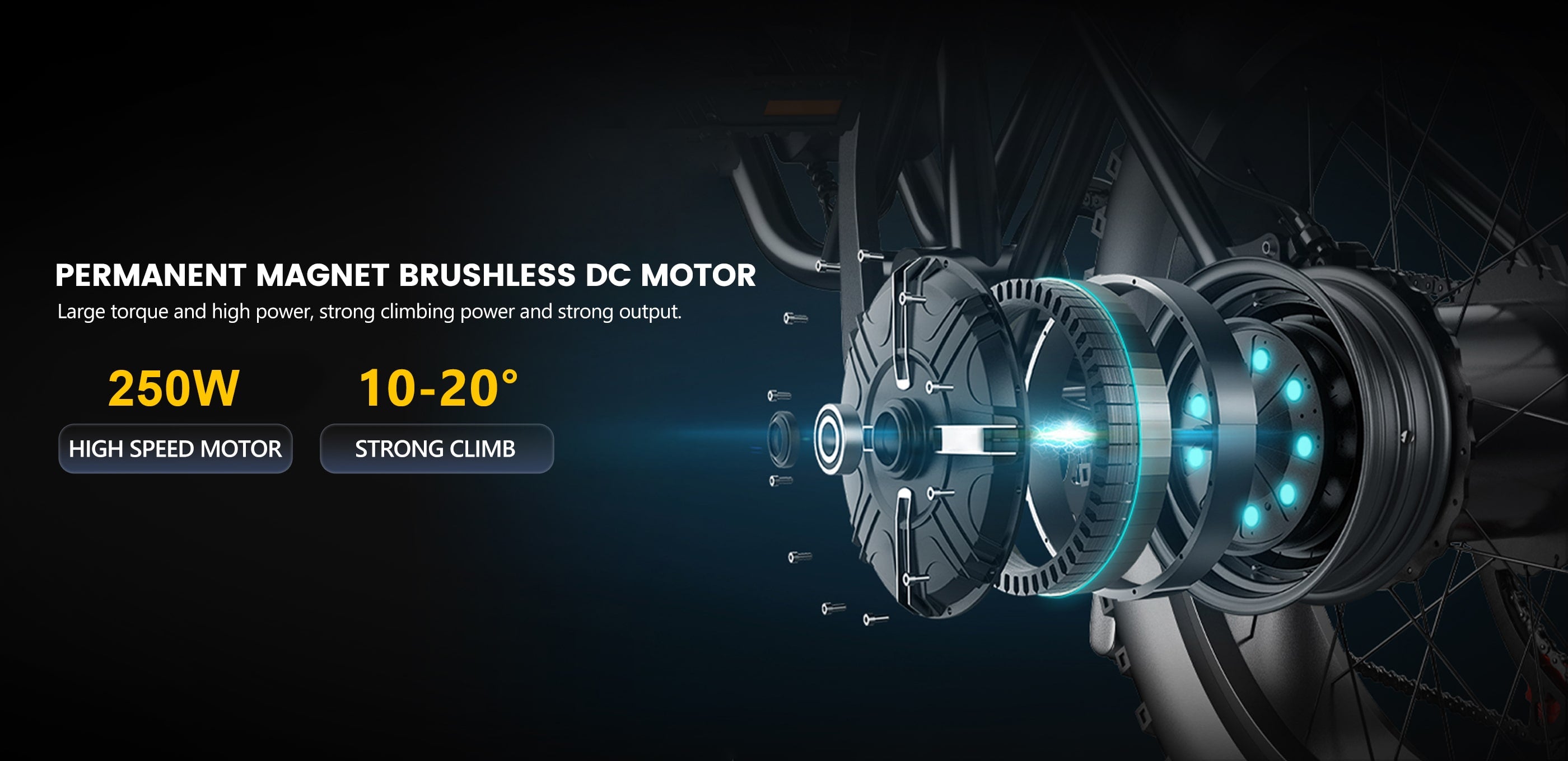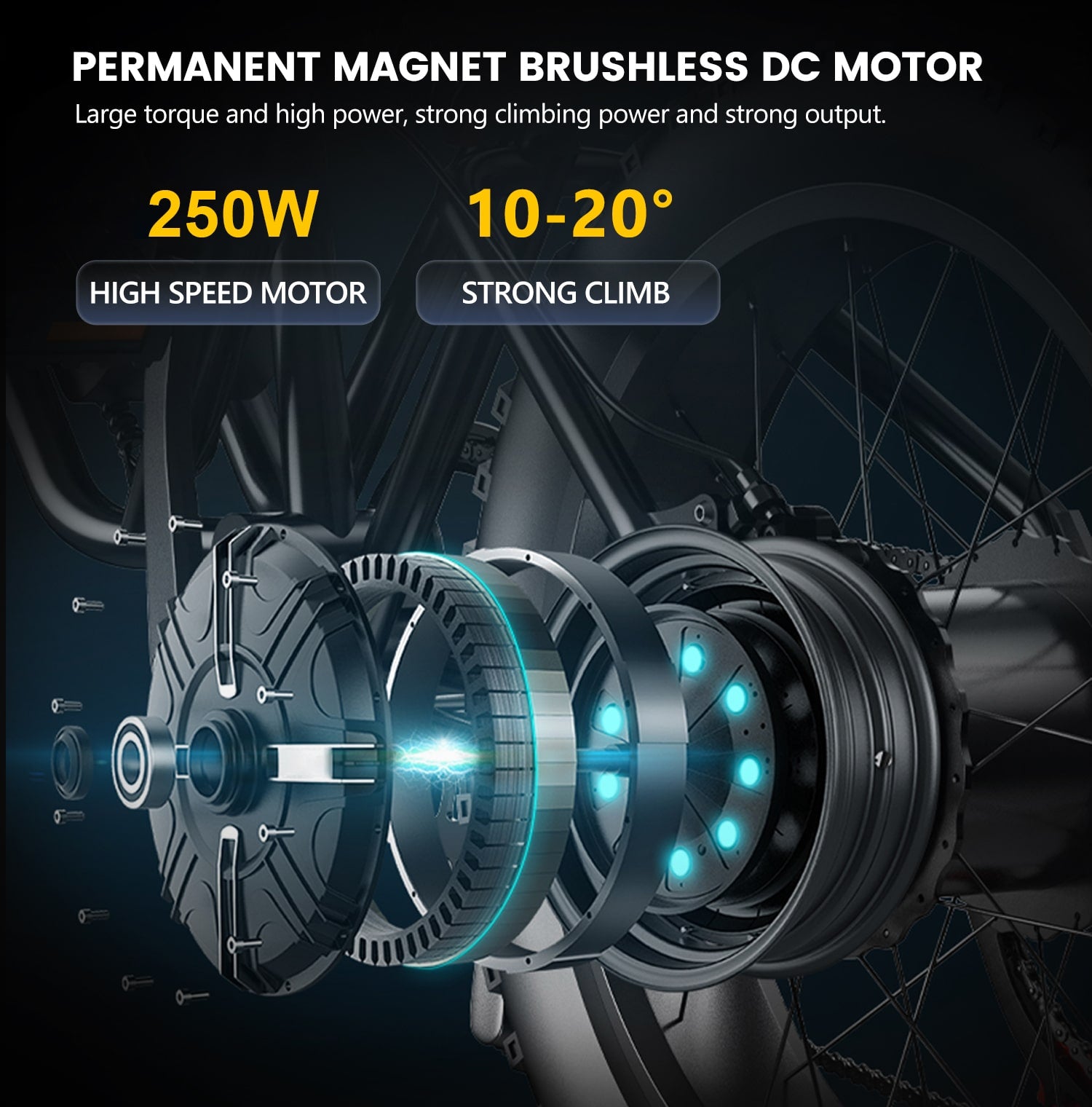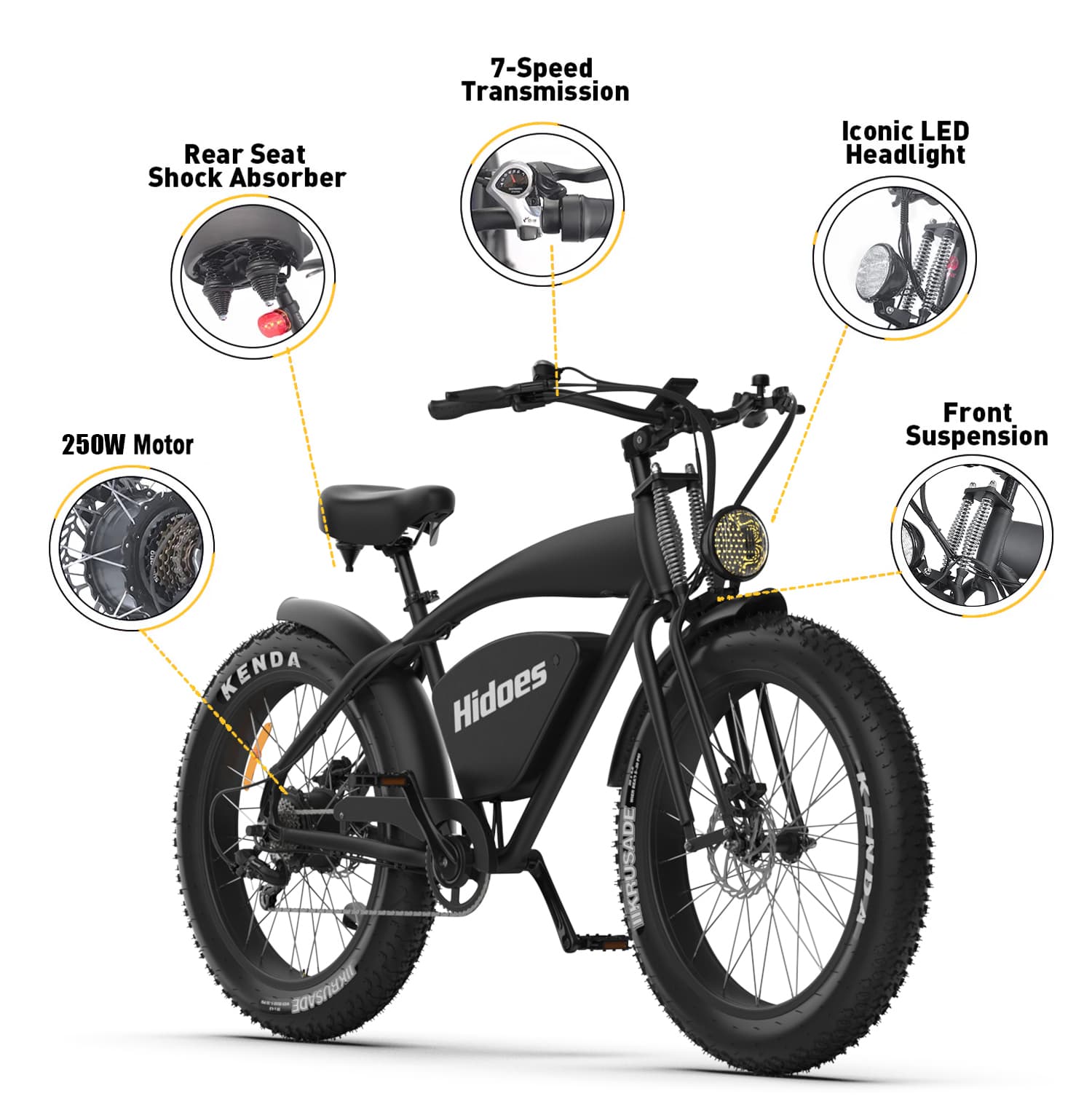 Hidoes B3 250W Electric Mountain Bike, 7-speed gear electric bike, maximum speed 25km/h, maximum range in pedal assist mode is 60 miles, maximum load capacity 150kg.