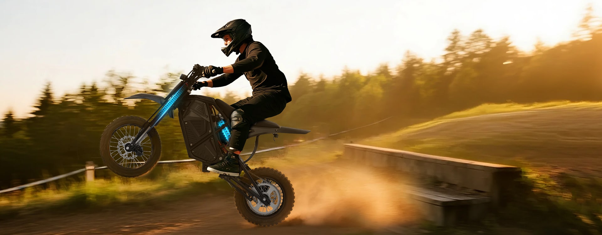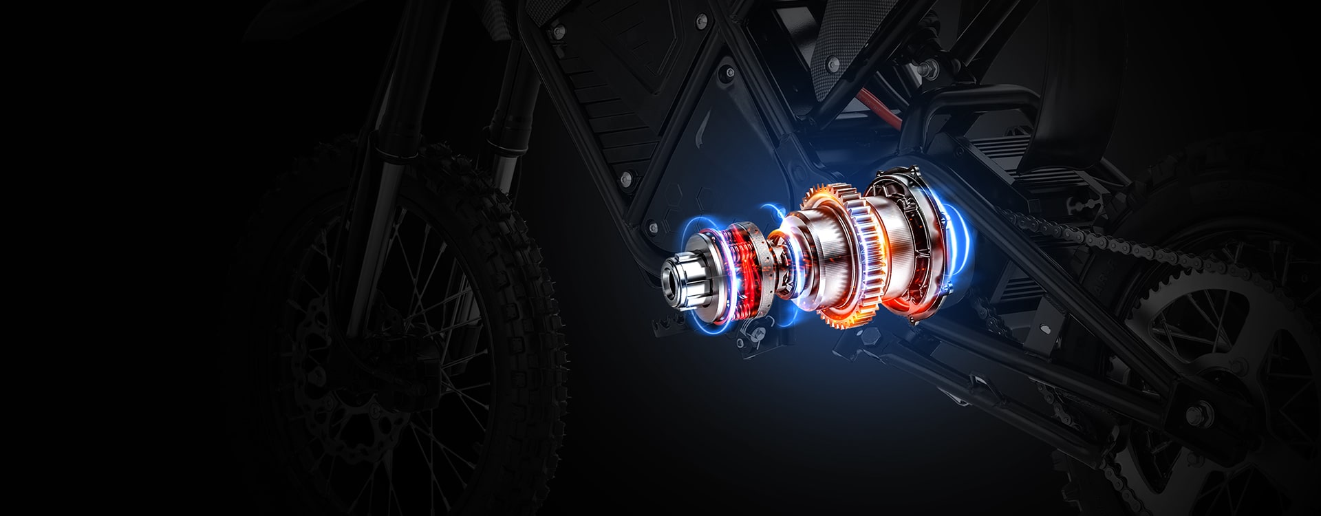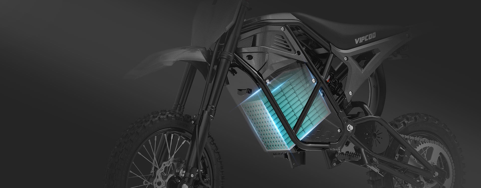 VIPCOO H3 Electric Dirt Bike, 23AH removable battery, 3500W mid-drive motor, 14-inch front and 12-inch rear off-road tires—effortlessly handles both urban streets and wilderness terrain.