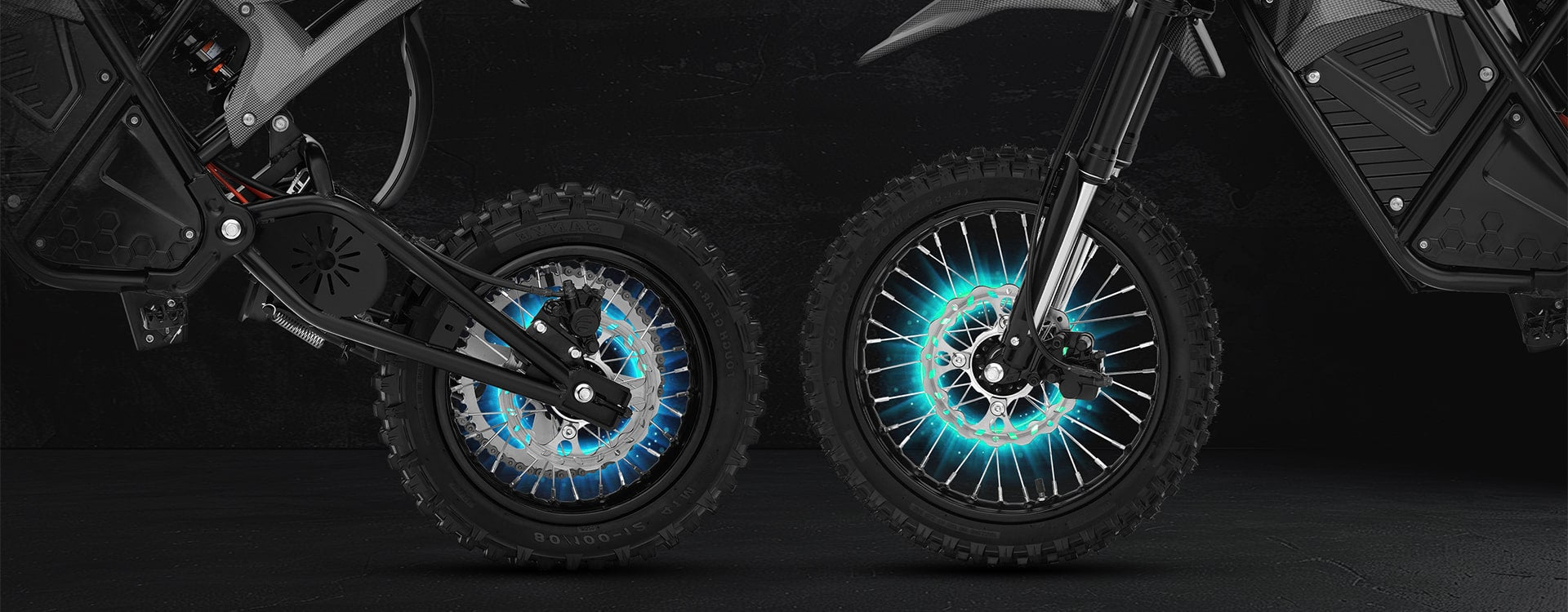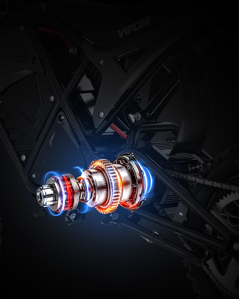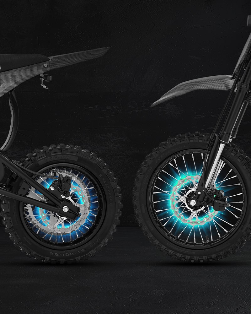 VIPCOO H3 Electric Dirt Bike, 23AH removable battery, 3500W mid-drive motor, 14-inch front and 12-inch rear off-road tires—effortlessly handles both urban streets and wilderness terrain.
