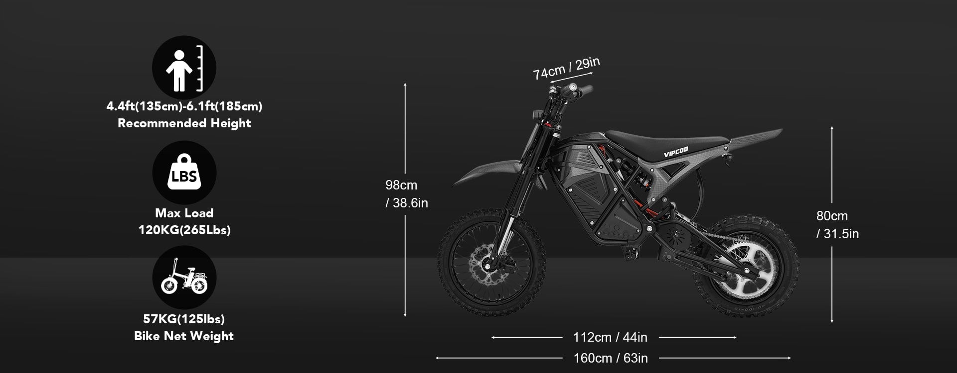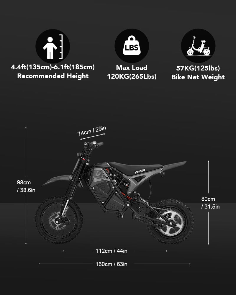 VIPCOO H3 Electric Dirt Bikes - 37 Mph Fast Speed